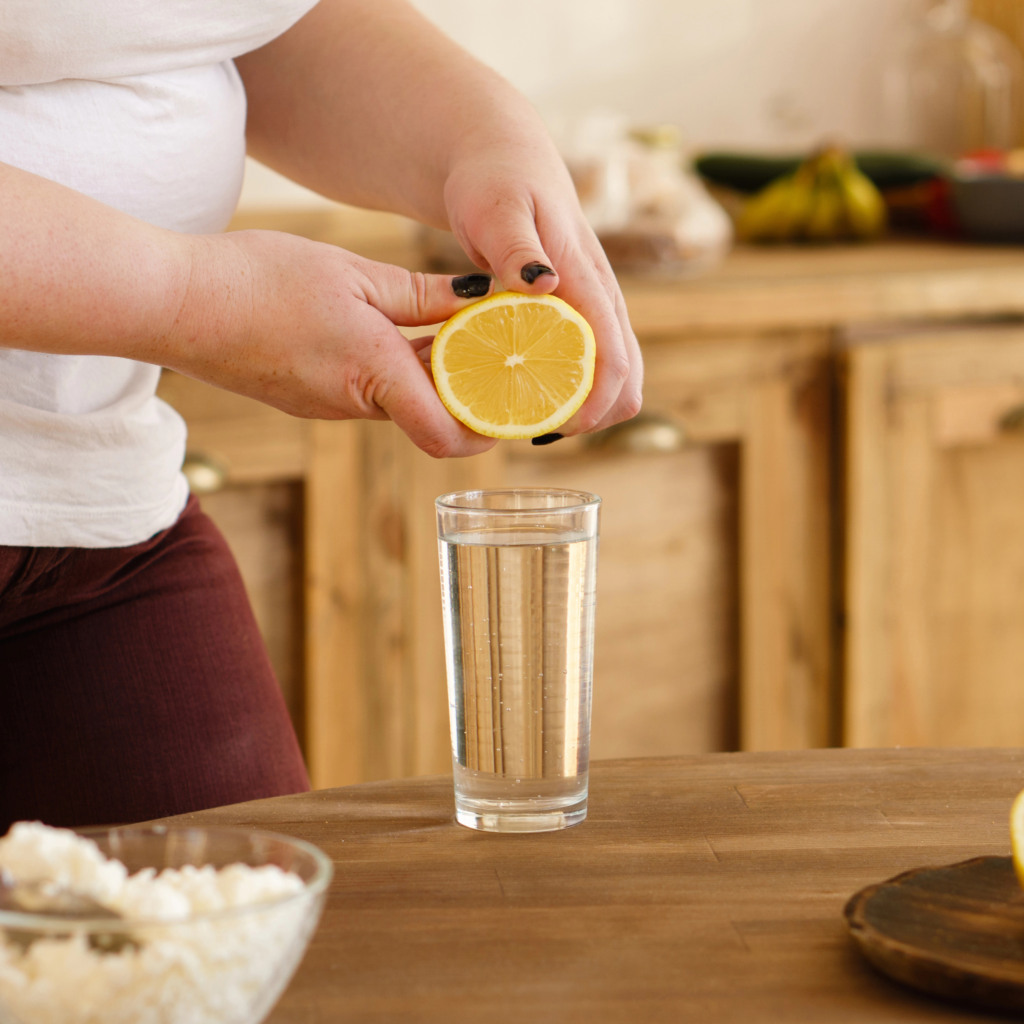 Nada melhor do que um copo de água morna com umas gotinhas de limão logo de manhã! Essa dupla hidrata, ajuda a despertar o sistema digestivo e ainda tem vitamina C.