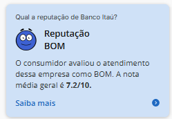 Desse modo, em pesquisa realizada no dia 28 de agosto de 2025, a avaliação do banco Itaú, emissor do Cartão Pão de Açúcar, ficou, dentre os critérios de avaliação do Reclame AQUI, classificado como “Bom”.