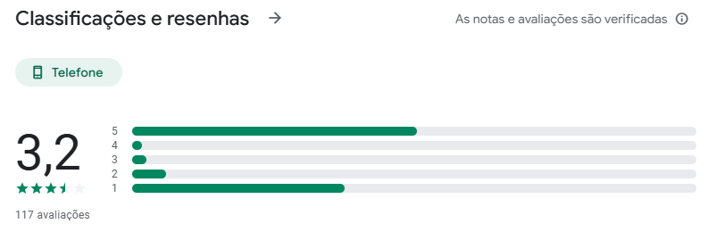 Já na App Store, possui somente 39 avaliações e conta com a nota 4,3.