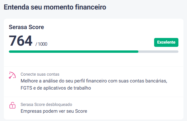 Caso queira ter informações mais precisas, é possível conectar a sua conta Serasa com as suas contas bancárias no modelo Open Finance ou então a conta do FGTS. Assim, a analise de perfil pode ser mais aprofundada e melhorar o score.
