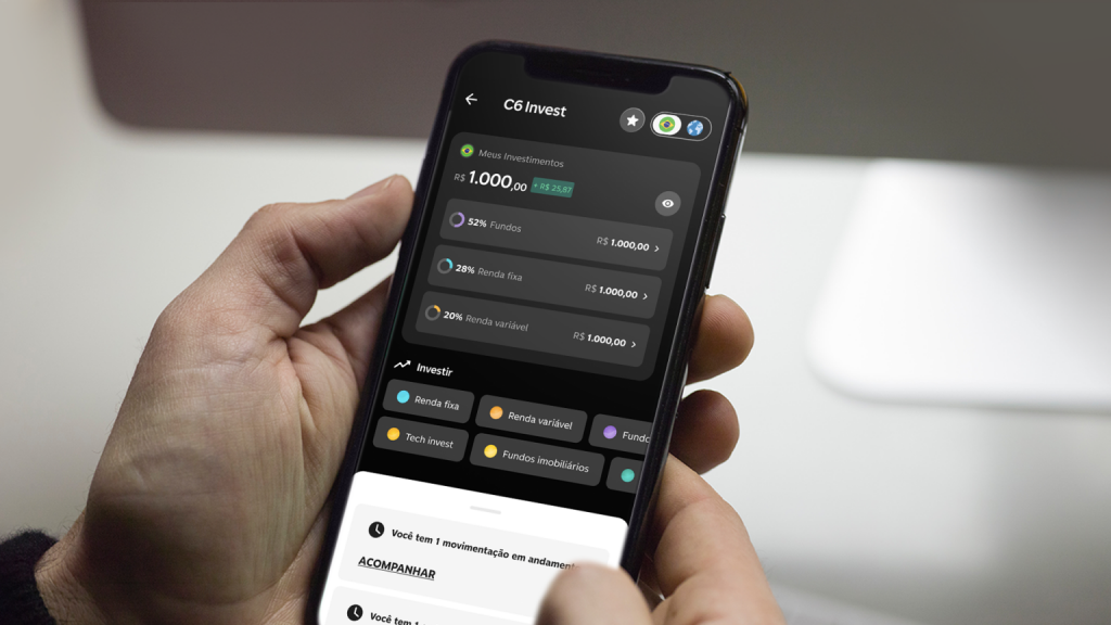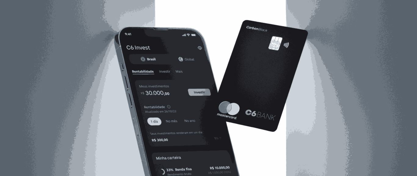 - Tudo em um só lugar: Transações cambiais, aplicações financeiras e monitoramento do portfólio sem sair do aplicativo C6 Bank. Além disso, pode contar com suporte de um assessor de investimentos ou Carbon Partner, conforme o segmento do cliente.