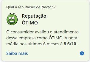 Primeiramente, nos últimos seis meses, a Necton apresentou nota 8,6 de 10, considerado ótimo. Afinal, esse dado é significativo, pois mostra o compromisso da empresa em atender e resolver as questões levantadas por seus clientes. Além disso, a Necton conseguiu resolver 100% dos problemas reportados, o que reflete positivamente na sua reputação.