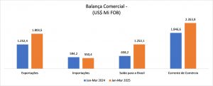 “Mais uma vez, alcançamos um recorde histórico para o primeiro trimestre, e isso é reflexo direto do trabalho de internacionalização de empresas brasileiras e da atuação conjunta entre instituições públicas e privadas”, completa.