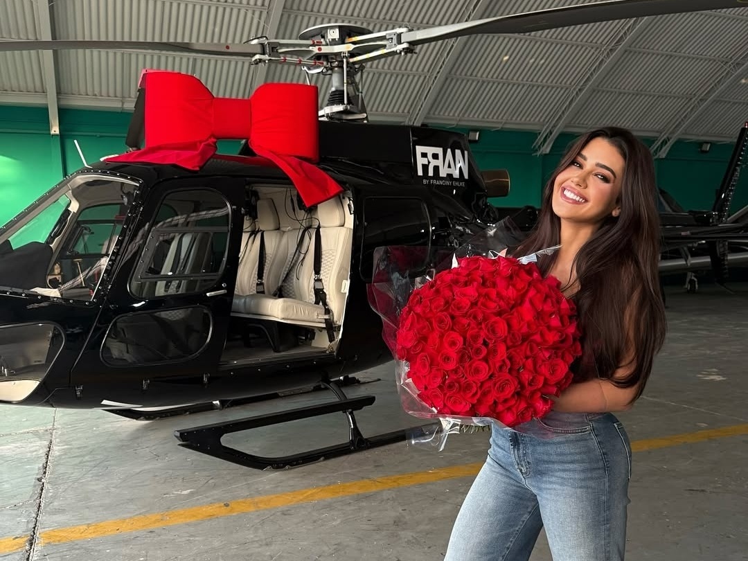 Franciny Ehlke ganhou um helicóptero personalizado do marido bilionário.